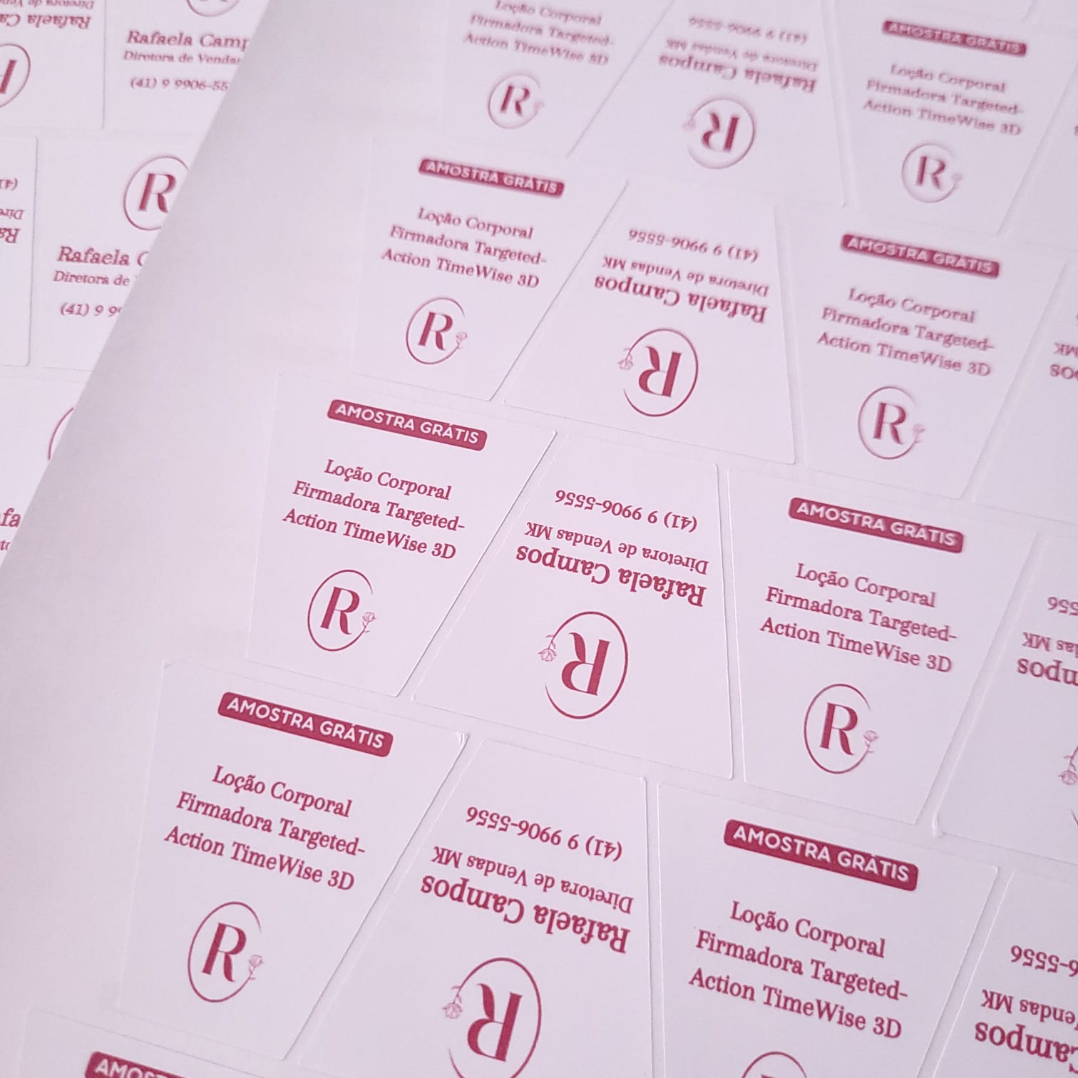 Cada cartela contém 30 rótulos adesivos para bisnaga. Pode dividir em 15 pares, caso queira personalizar frente e verso.