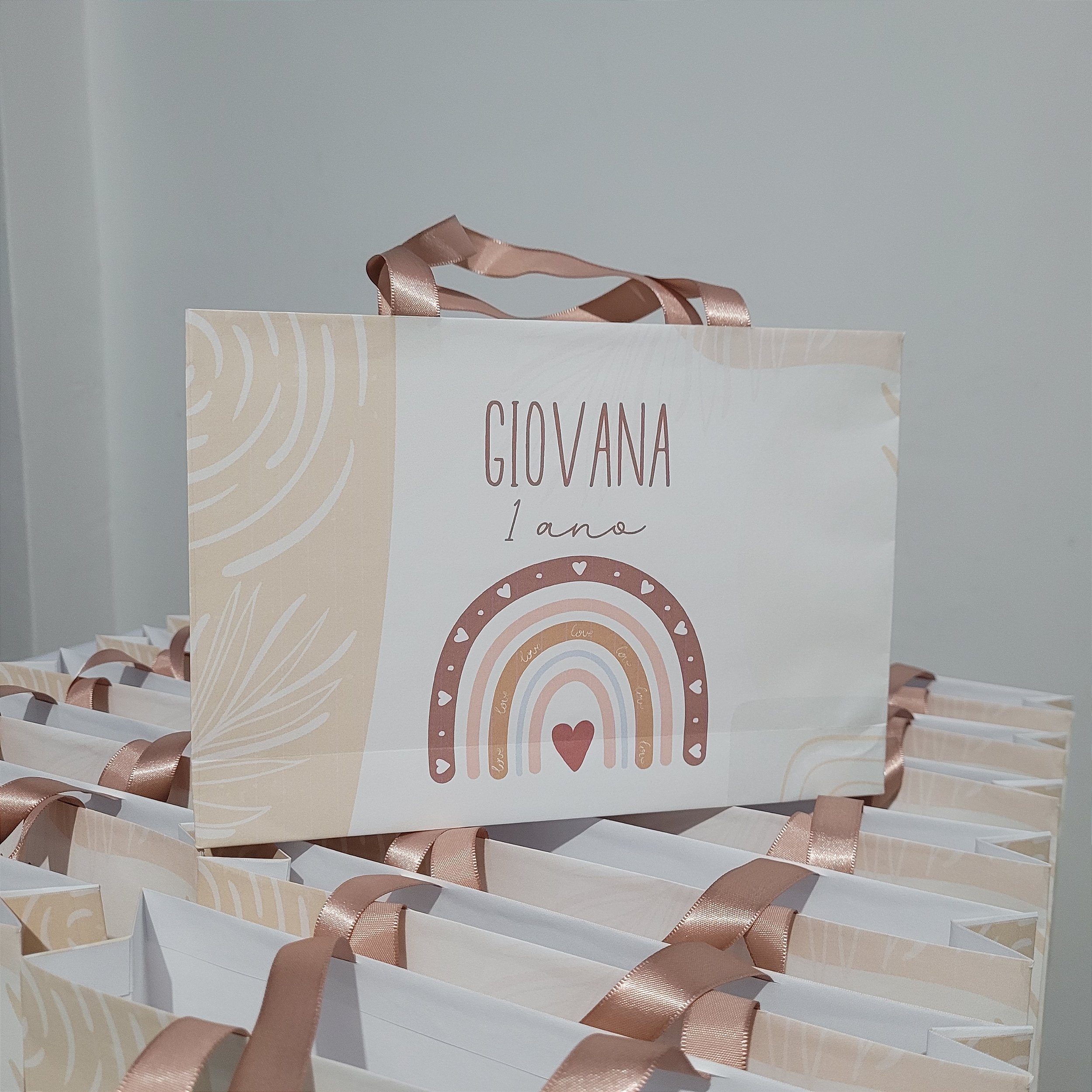 Material: Papel Offset 120g, alça em cetim (cor a escolher)